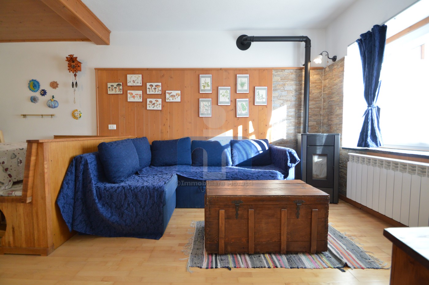In the municipality of Valdisotto, in the small, picturesque, and panoramic hamlet of Oga, about 5 km from Bormio, in a unique location on the western edge of town at the entrance to the road leading to Calosio. This ground-floor apartment with a breathtakingly panoramic and sunny balcony is located in a building with only four residential units, with no condominium fees. The property comprises an entrance hall, a living room with an open-plan kitchen and dining area, two large bedrooms, and a bathroom with a window. The heating is independent with a gas boiler, and there is also a certified pellet stove in the living room. In addition to the furnished apartment, a garage with an attached cellar is included in the sale. The unit is available immediately and ready to move in.