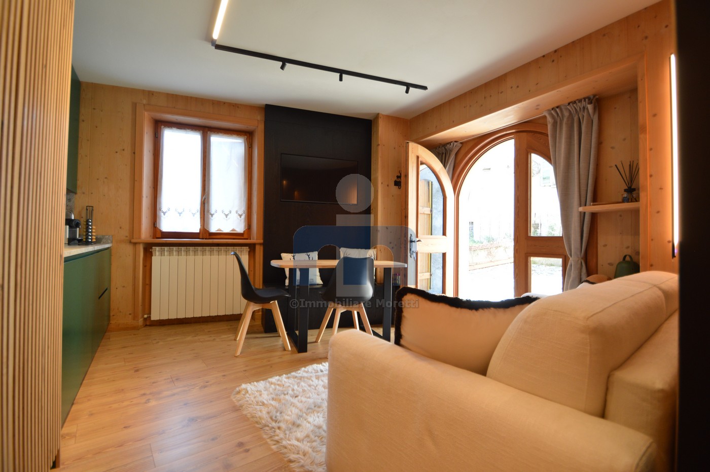 Bormio, on the central Via Pedranzini, conveniently located for all amenities in the historic town center, offers a ground-floor apartment in a small building with no condominium fees. The apartment comprises a living area with kitchenette, a bathroom, and a thoughtfully separated sleeping area. The property has been completely renovated and beautifully furnished, making every space usable and welcoming. The property also includes a ski and bicycle storage room and a superb room converted into a wellness area with a sauna. Heating, managed via an app, is provided by radiators and a central heating system equipped with heat meters. The property is being sold fully furnished and available immediately.
