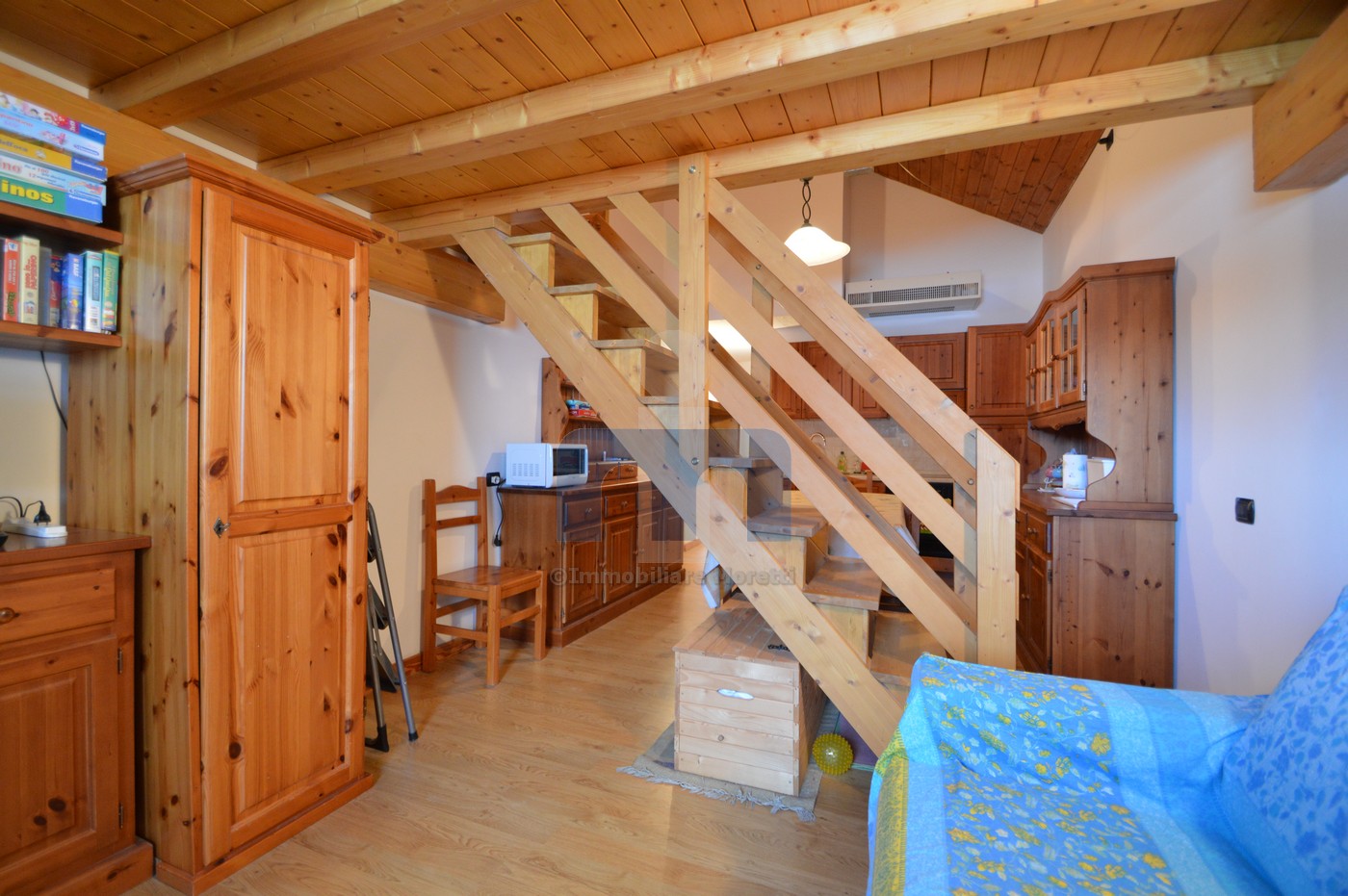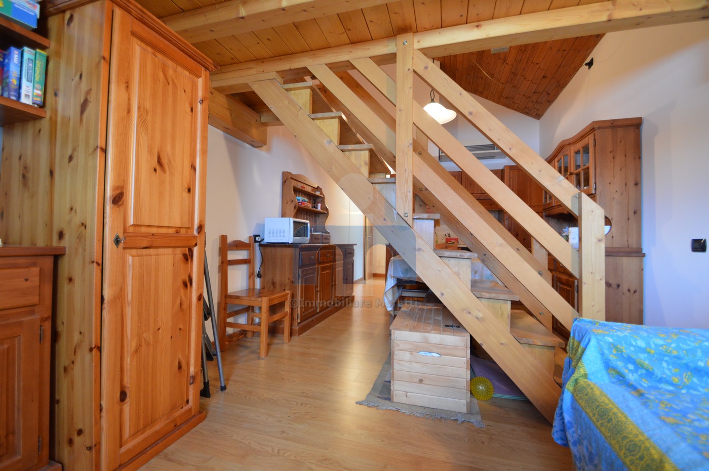 Valfurva, nel centro della frazione di Santa Caterina, a lato della pista da sci dove, a partire dalla stagione invernale corrente, è in funzione il nuovo impianto di risalita “La Fonte” che porta gli sciatori fino a quota 2200 mt., proponiamo in vendita una soluzione abitativa all’interno del complesso residenziale denominato “Residenza Valtellina”. Quinto piano con ascensore ed è composto da : soggiorno/pranzo con angolo cottura e zona living, bagno finestrato e camera da letto ricavata nel soppalco collegato da una comoda scala interna in legno. L’appartamento è stato arredato con l’utilizzo di tanto legno che lo rende particolarmente caldo e accogliente dopo una giornata trascorsa con gli sci ai piedi lungo le piste sulle pendici del Monte Sobretta oppure lungo l’anello di fondo che si estende per 10 km nella pineta.