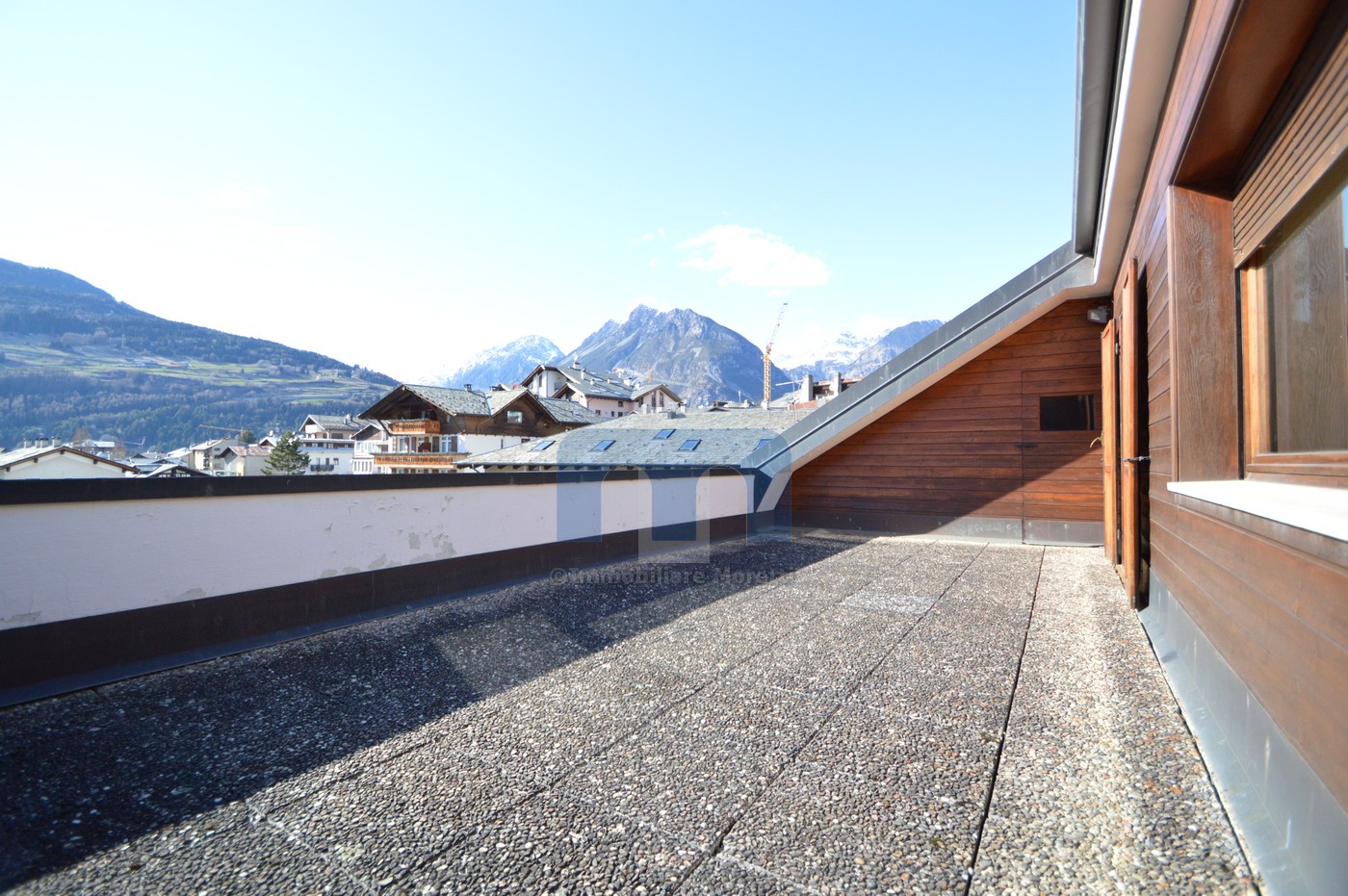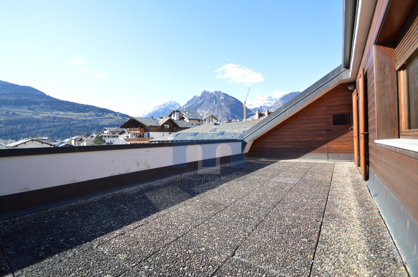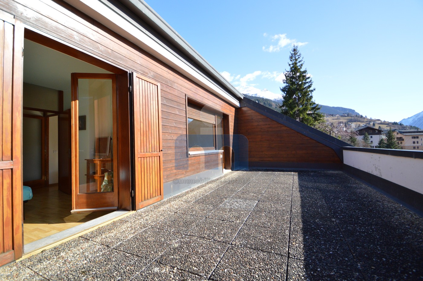 Elemento di assoluto pregio è lo splendido terrazzo di circa 30 mq, con esposizione sud-ovest, che garantisce un’eccellente luminosità durante tutto l’arco della giornata. Questo spazio esterno rappresenta un vero e proprio prolungamento della zona living, perfetto per momenti di relax, pranzi all’aperto o per godere del panorama montano. Completa la proprietà anche un balcone.