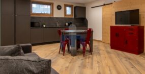 A valorizzare ulteriormente la soluzione, un comodo garage al piano terra, incluso nella proprietà esclusiva, che rappresenta un importante plus in una località come Bormio.